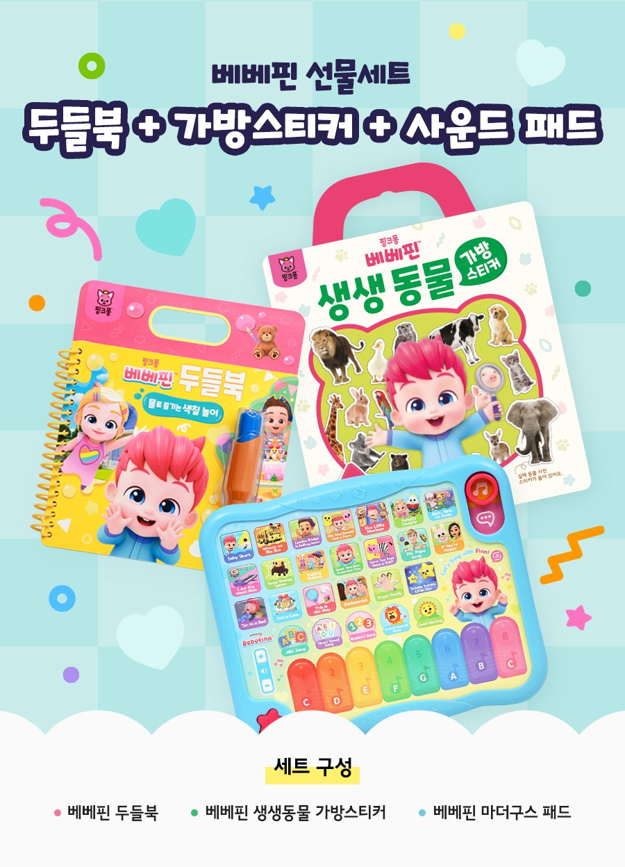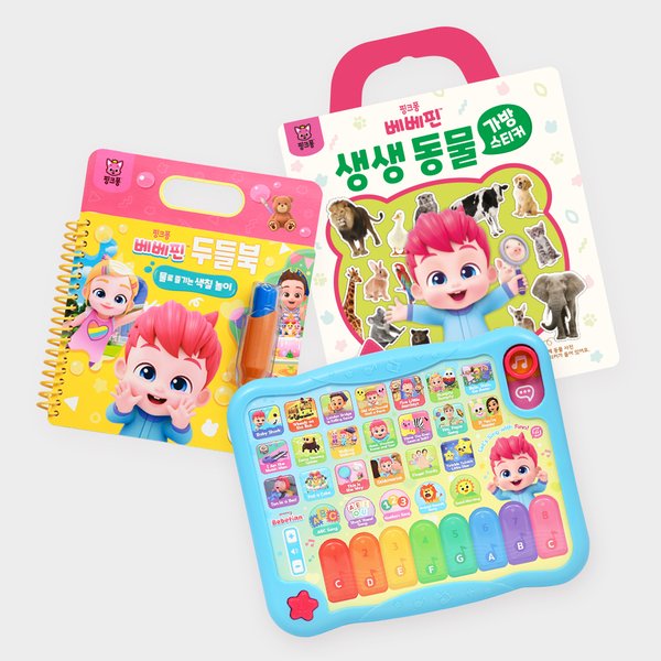 [외출템세트] 베베핀 마더구스패드+베베핀 두들북+생생동물 가방스티커