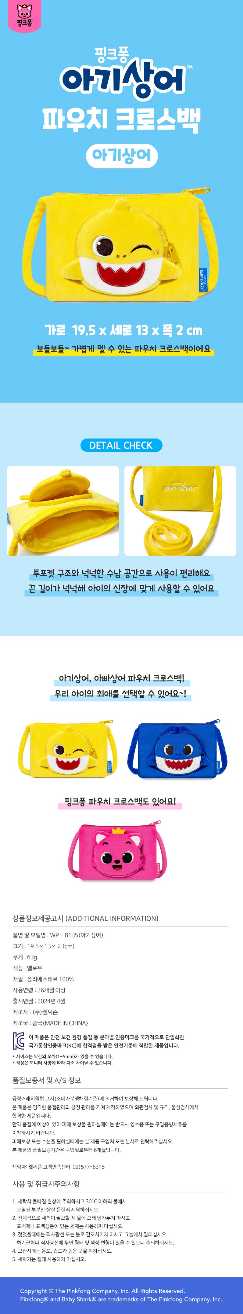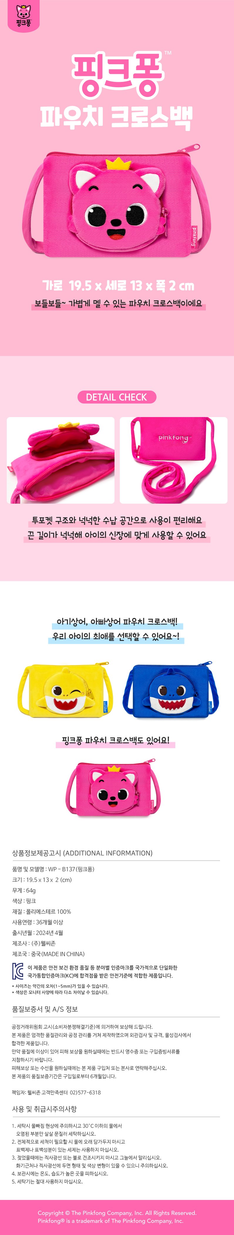 [특가] 핑크퐁 아기상어 파우치 크로스백