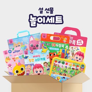 [설선물세트] 첫사운드패드+핑크퐁가방퍼즐+공룡두들북+아기상어컬러링북+우리가족가방스티커+칭찬스티커북
